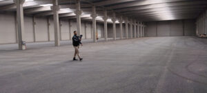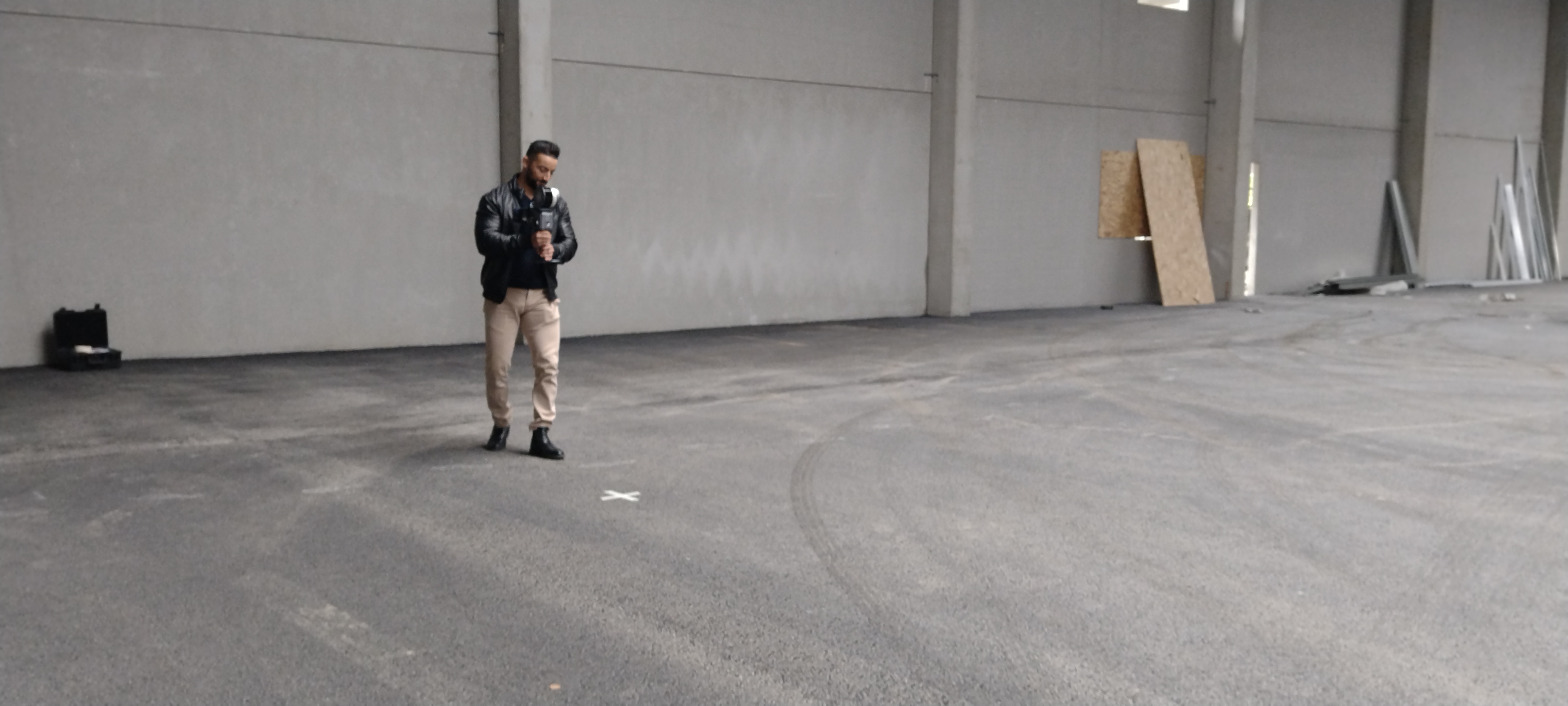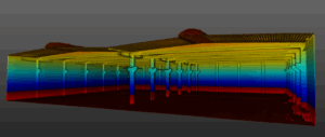 Phase 1 : Acquisition du nuage de points avec un scanner dynamique afin de réaliser un lever altimétrique précis dans un bâtiment industriel.